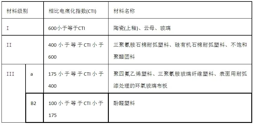 表1所列的防爆电气设备中常用固态绝缘材料的分级是根据它的相比电痕化指数(CTI)进行的。这样的分级仅仅表明了它们的电气性能,然而它们的力学性能和耐热性能、耐化学性能是各不相同的。因而,在选择这些材料时还应该根据使用环境的具体情况考虑它们的力学性能和耐热性能、耐化学性能。