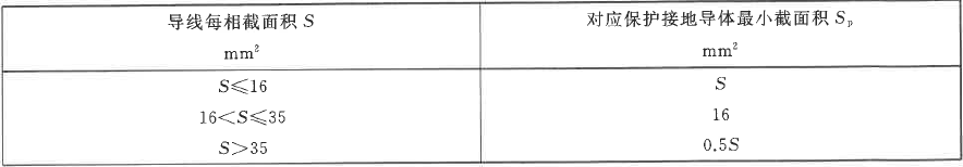 表1 保护导线的最小截面积