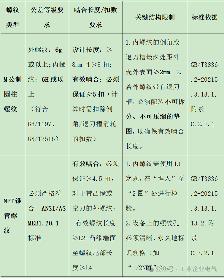 上述严格的M/NPT选型及参数要求,仅针对构成“隔爆接合面”的螺纹(即设备引入口及引入装置连接部位)。设备外壳上普通的紧固螺栓(不构成隔爆面),可按常规机械标准选用,不受此限。
