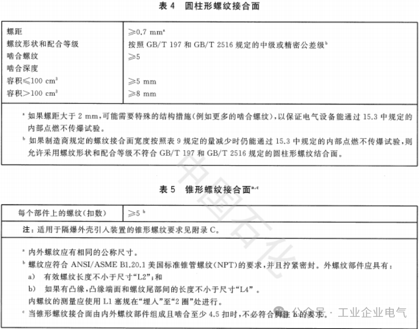 螺纹参数是设备隔爆型式试验的一部分,需通过爆炸试验验证。 |