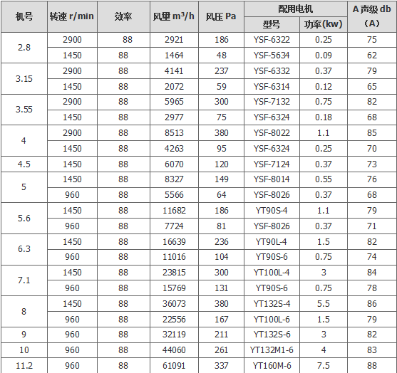 | BT35-11系列防爆轴流风机的规格参数 | |