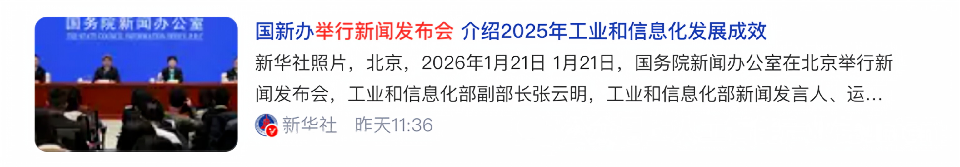 1月21日上午,国务院新闻办公室举行新闻发布会。工信部在总结2025年工业发展成效的同时,释放了一个足以影响未来五年制造业竞争格局的关键信号:“AI+制造”进入深水区,竞争焦点正从“设备智能”转向“企业AI能力”。